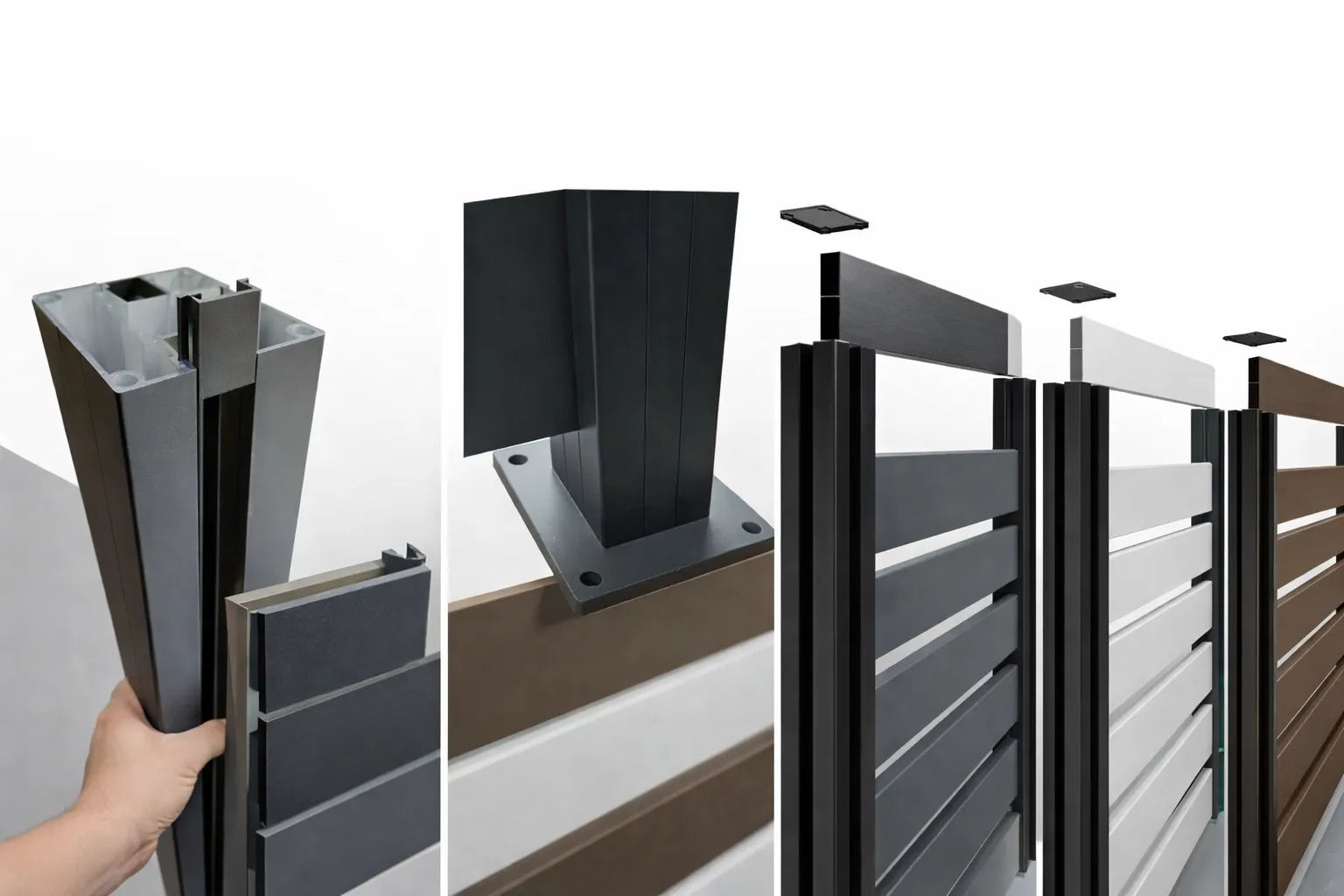 La soluzione perfetta per dare struttura, stile e durata alla tua recinzione. Installazione semplice, resistenza eccezionale e design elegante senza manutenzione. Il pilastrino è composto da un pilastro interno in ferro zincato con piastra a 4 fori ideale per essere bullonato sul piano di calpestio. In aggiunta abbiamo un secondo pilastro esterno in Alluminio rigido colorato con la stessa colorazione delle doghe.