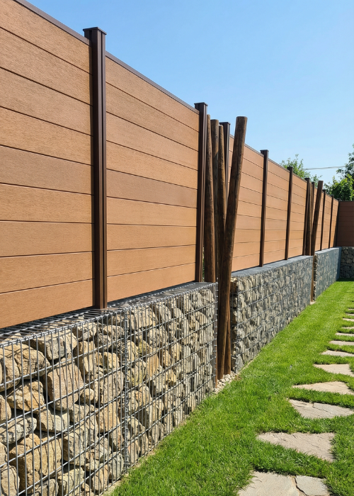 Le doghe WPC co-estruso con laminato ultra-resistente effetto legno rappresentano la linea premium per recinzioni professionali.